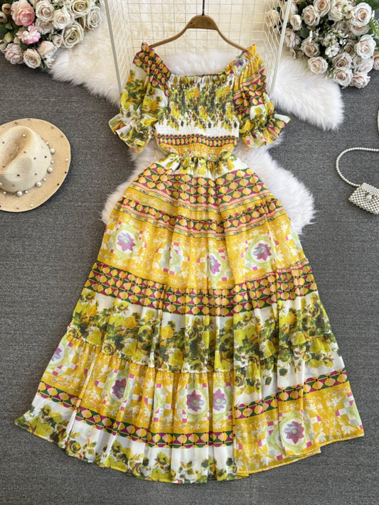 فستان شاطئ بوهيمي لقضاء العطلات على الشاطئ بأكمام قصيرة وياقة مربعة