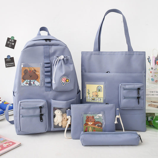 مجموعة من خمس قطع من حقائب الظهر متناسقة الألوان لطلاب المدارس المتوسطة