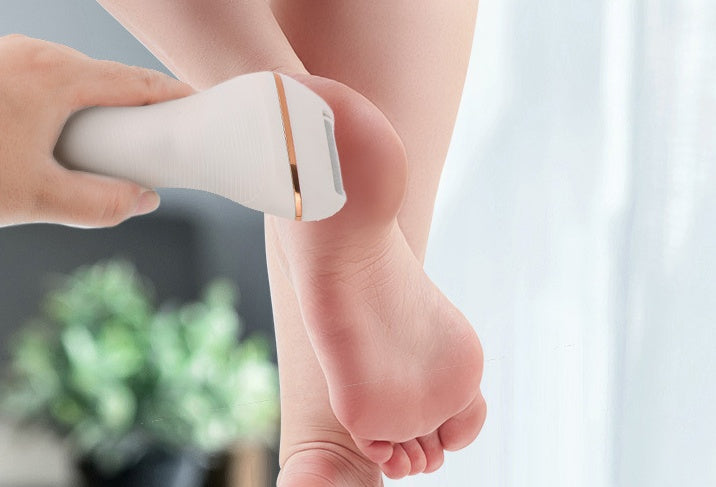 2. قم بتشغيل أداة إزالة الجرب الكهربائية ثم مررها بلطف على الجرب الموجود على قدميك لتحقيق التأثير المطلوب.