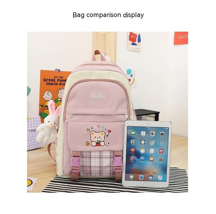 حقيبة ظهر كبيرة الحجم مكونة من ثلاث قطع من قماش مربعات للمدرسة الثانوية وطلاب المدارس الإعدادية والمدارس الابتدائية