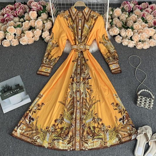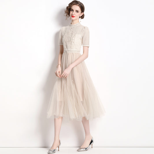 Palace Style Dress Women's Autumn High Waist Round Neck Dress