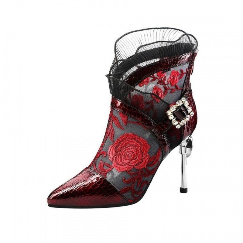 High Heels Single Shoes Embroidered Chinese Wind Mesh Toe Cap Sandals